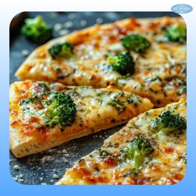Cheesy pizza slice topped with colorful veggies. Crispy base and gooey goodness in every bite.